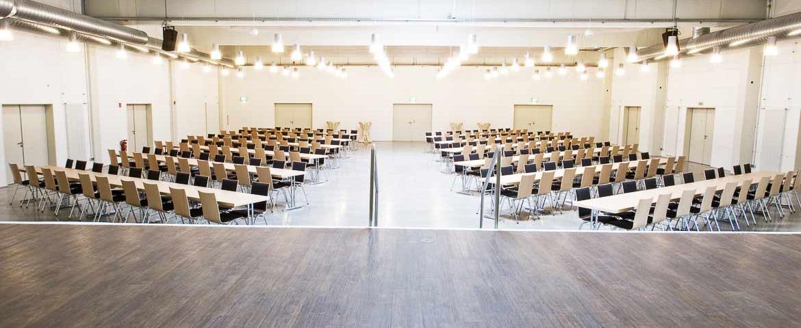 Für große Tagungen, Kongresse und Konferenzen bietet Ihnen die große Halle mit einer Kapazität bis zu 650 Personen (Reihenbestuhlung) den idealen Rahmen. Das Foyer bietet sich für eine begleitende Ausstellung und als Willkommensbereich an. Selbstverständlich halten wir eine großzügige Garderobe vor.